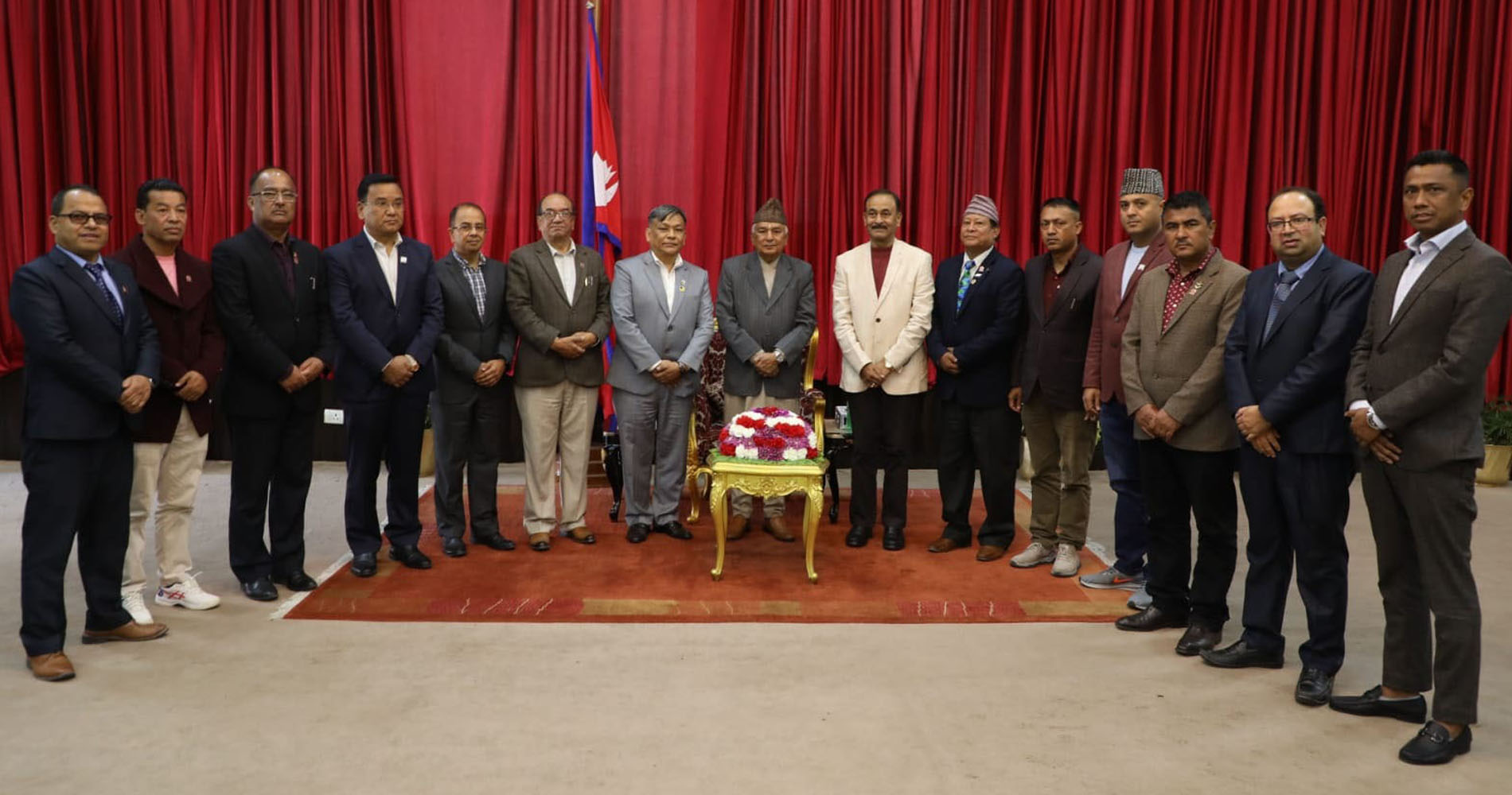 नेपाल निर्माण व्यवसायी महासङ्घको प्रतिनिधिमण्डलसँगको भेटमा राष्ट्रपति पौडेलले नेपाल समृद्ध बनाउनुपर्ने भन्दै मुलुकमा विकासको ठूलो सम्भावना रहेको र यसका लागि सबै मिलेर काम गर्नुपर्ने धारणा राख्नुभयो ।