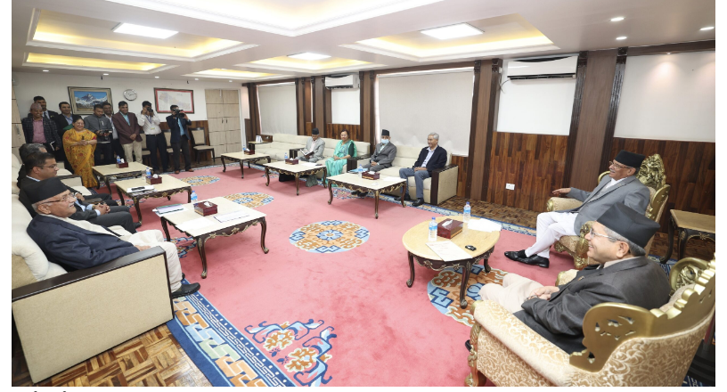 बैठकमा प्रधानमन्त्री एवं माओवादी केन्द्रका अध्यक्ष पुष्पकमल दाहाल ‘प्रचण्ड’, कांग्रेसका सभापति एवं पूर्वप्रधानमन्त्री शेरबहादुर देउवा र एमालेका अध्यक्ष एवं पूर्वप्रधानमन्त्री केपी शर्मा ओली सहभागी हुनुहुन्थ्यो ।