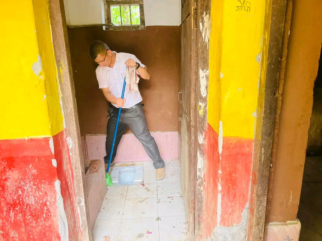 विद्यालयको सरसफाई तथा अनुगमन गर्दै वडा अध्यक्ष कार्की
