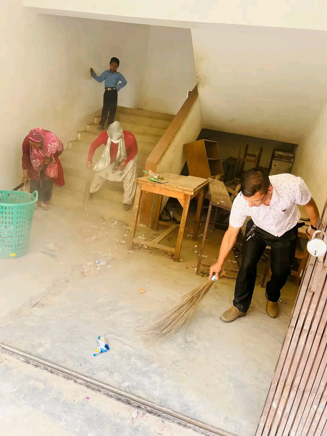 वडा अध्यक्ष धनेन्द्र कार्कीको नेतृत्वमा वडा सदस्य तथा कर्मचारीसहितको टोलीले माण्डवी माध्यामिक विद्यालय नयागाउँ विद्यालयमा सरसफाई तथा अनुगमन गरिरहेकाे तस्बिरहरू