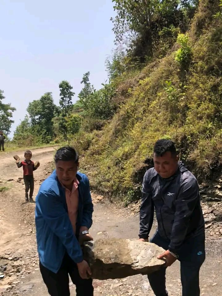 उहाँले कार्यकालको पहिलो वर्ष वार्षिक उत्सवका दिन आज लच्याङ उर्लेनी सडक खण्डको बल्बा खोल्सामा बाटो बिग्रेको र सवारीसाधन आवत जावत गर्न जोखिम भएको स्थानमा हामी जनप्रतिनिधि र स्थानीय बासीहरुको सक्रियतामा जनश्रमदानमार्फत बाटो मर्मत गर्ने कार्य बताउनु भयाे ।