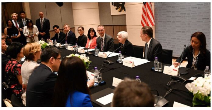 ‘चीन–अमेरिका आर्थिक र व्यापारिक सम्बन्धको प्रकृति पारस्परिक लाभप्रद र लाभकारी छ र व्यापार युद्ध वा ‘डिकप्लिङ र ब्रेकिङ चेन’ मा कोही पनि विजेता हुँदैन’ मन्त्रालयका एक अधिकारीले जारी गरेको विज्ञप्तिमा भनिएको छ । शुक्रबार बिहान येलेनले आफ्ना पूर्वसमकक्षी तथा पूर्वउपप्रधानमन्त्री लिउ हे र चीनको केन्द्रीय बैंकका निवर्तमान गभर्नर यी गाङसँग ‘ठोस कुराकानी’ गरेको अमेरिकी ट्रेजरीका एक अधिकारीले बताएका छन् ।
