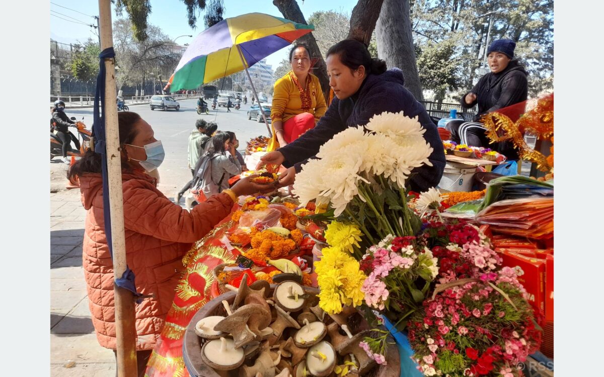 २ फागुन, काठमाडौँ । कालिकोटबाट २० वर्षअघि उपचारका लागि काठमाडौँ आउनुभएकी लालकला सुनारको शरीर रोगले गल्दै र खल्तीमा पैसा रित्तिदै गएपछि छिमेकीले सल्लाह दिए, “खाली बस्नुभन्दा भद्रकाली मन्दिर परिसरमा पूजा सामग्रीको पसल राख्नू ।”