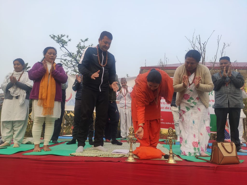 योग शिविरको शुभारम्भ गर्नुहुँदै गोकर्णेश्वर नगर प्रमुख दीपककुमार रिसालले प्रत्येक वडामा कम्तीमा एउटा योग भवन बनाउने लक्ष्यका साथ काम भइरहेको बताउनुभयो ।