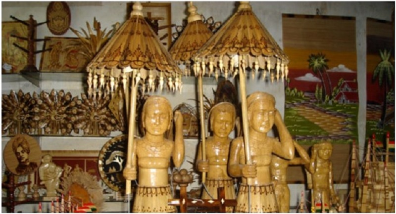 बाँस, लेकमा पाइने गजिङ, मालिङलगायतका बाँसजन्य काठमा हातले कलात्मक शैलीमा कुँदेर विभिन्न प्रकारका आकृति दिने गरिएकामा अहिले त्यो प्रचलन हराउँदै गएको घर्तीमगरले गुनासो पोख्नुभयो ।