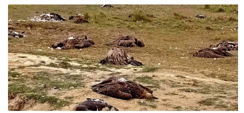 वन अधिकृत मोहनराज काफ्लेले पाँच गिद्ध मृत अवस्थामा र दुई घाइते अवस्थामा फेला परेको जानकारी दिनुभयो । “गिद्ध मरेको ठाउँमा एउटा स्याल पनि मरेको भेटिएको छ” उहाँले भन्नुभयो, “स्यालको विषाक्त मासु खाएर गिद्ध मरेको हुनसक्ने प्रारम्भिक अनुसन्धानबाट खुलेको छ ।”